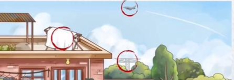 1。看天上的飞机,还有房顶的衣架。